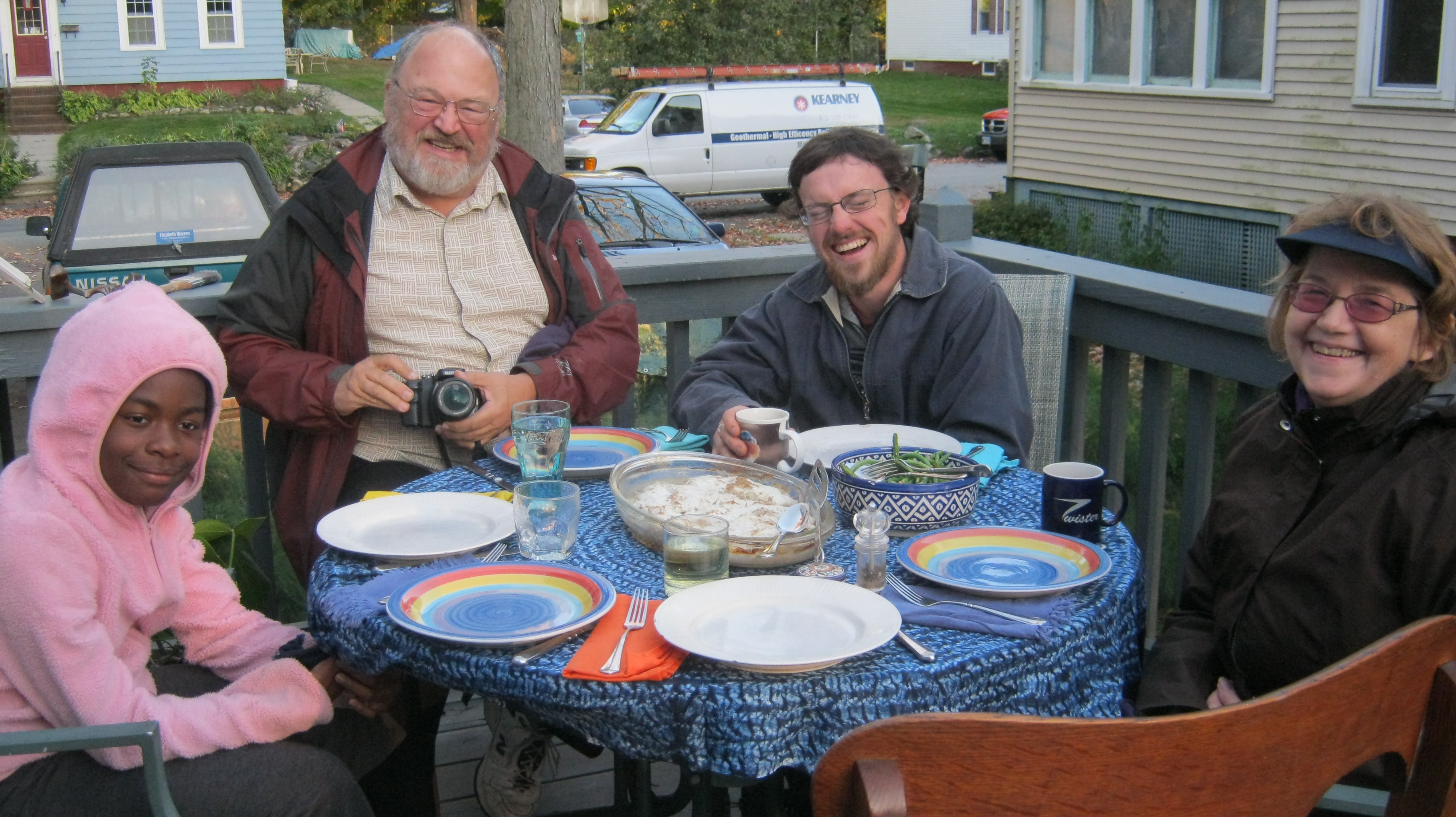 Okay. You know I write a Local Foods mystery series. Some of you know I used to be a farmer and I still have a small but productive home garden. At my table, we’re pretty much omnivores, although we keep red meat to a minimum. When I learned my longtime west-coast friend Roger was on a year long cross-country home IMG_2682schooling trip with his wife Leslie and their daughter Janelle, I invited them for dinner, along with my son JD. I asked about food restrictions. Roger said, “Leslie is gluten free and vegetarian, mostly.”