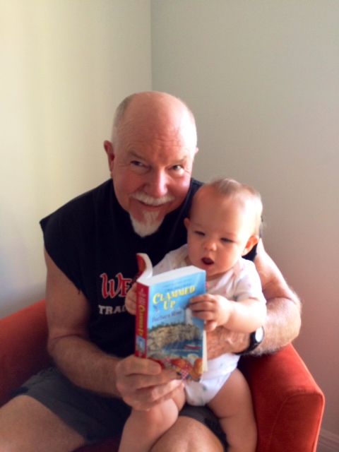 Later, my daughter-in-law sent me this photo of my son reading Clammed Up with his daughter.