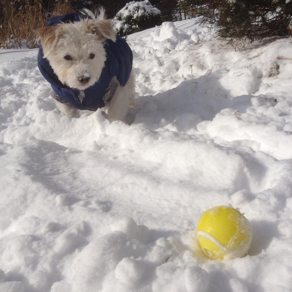 to watch Finny playing in it. He loves everything – snow, ice, sun, whatever – and lives each minute to the fullest.