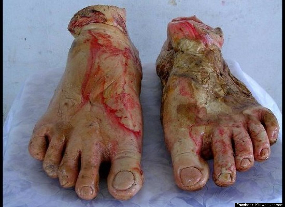 I described my bread baby as “perfectly rendered.” “Like a sculptor carved him.” So was that possible? My digging found a guy in Thailand who created near-autopsy perfect renderings of gruesome body parts out of bread, like this.