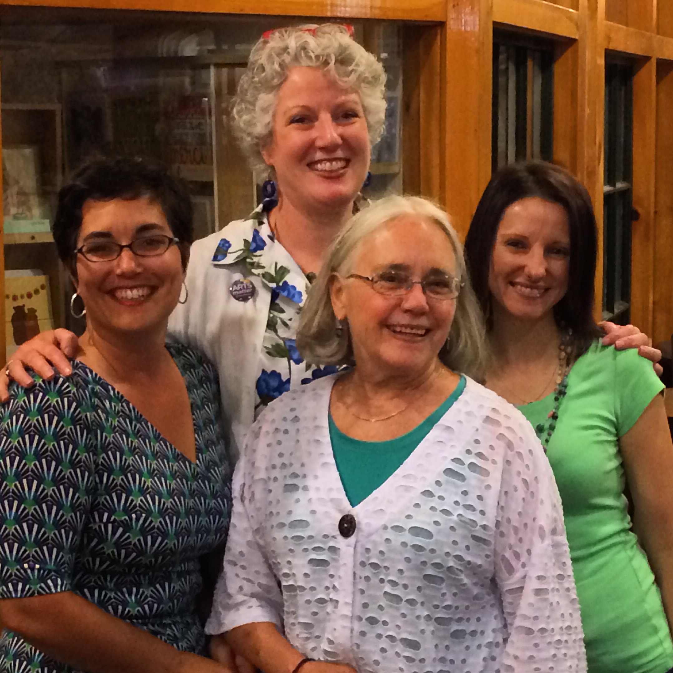 Julie: First of all, a big thanks to Jabberwocky for hosting us. What a great bookstore. Well worth a visit. Secondly, I loved moderating. Third, we do have fun together, and I hope the audience had a good time too. I think they did. It was really fun to talk to folks afterwards. And last, I am really freakishly tall, aren’t I? (Note to self: take the glasses off your head before a photo is taken. Yeesh.)