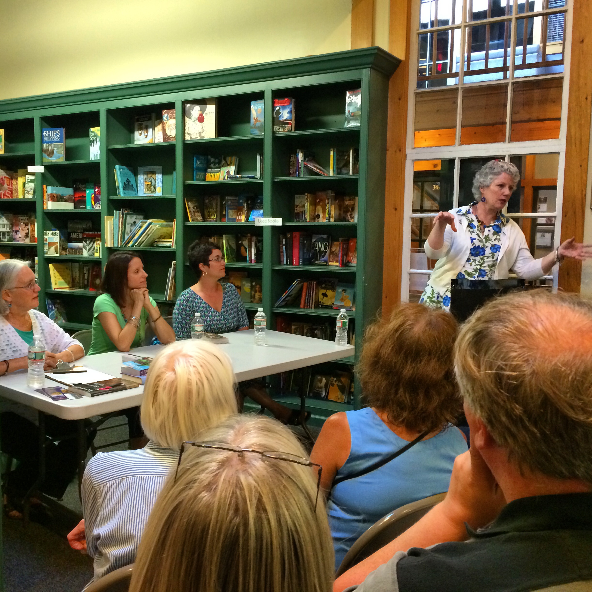 Jessie, Edith, and Liz were on a “Delicious Night of Cozy Mysteries” panel at Jabberwocky Bookshop in Newburyport, Massachusetts. Julie moderated and several dozen folks turned out from all over the North Shore and New Hampshire.