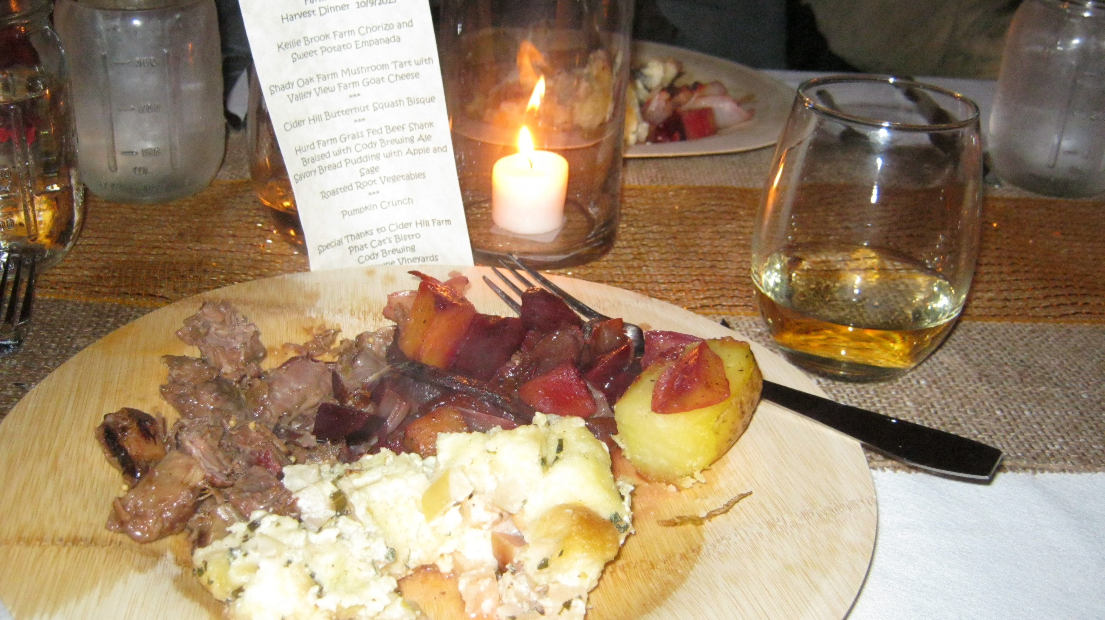 Quick report on the book party I held yesterday. I’d never had a launch party for ‘Til Dirt Do Us Part when it released at the end of May this year. The book opens at a farm to table dinner in the fall that I modeled on one that I attended at a local farm. That real dinner was cooked by the chefs at my local bistro, and they kindly gave me a version of one of their recipes to use in the book. So where better to hold a book party than at Phat Cats Bistro?