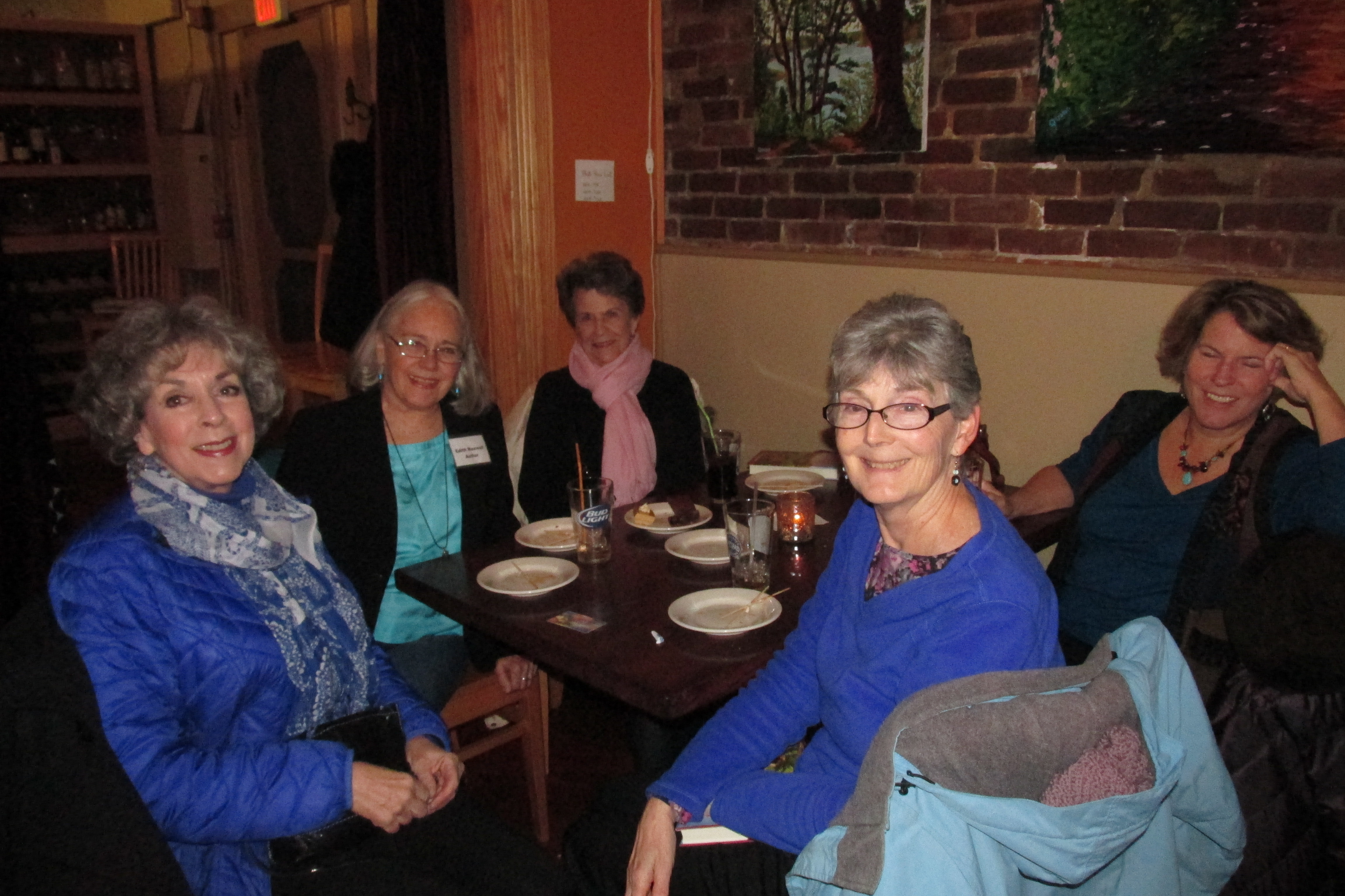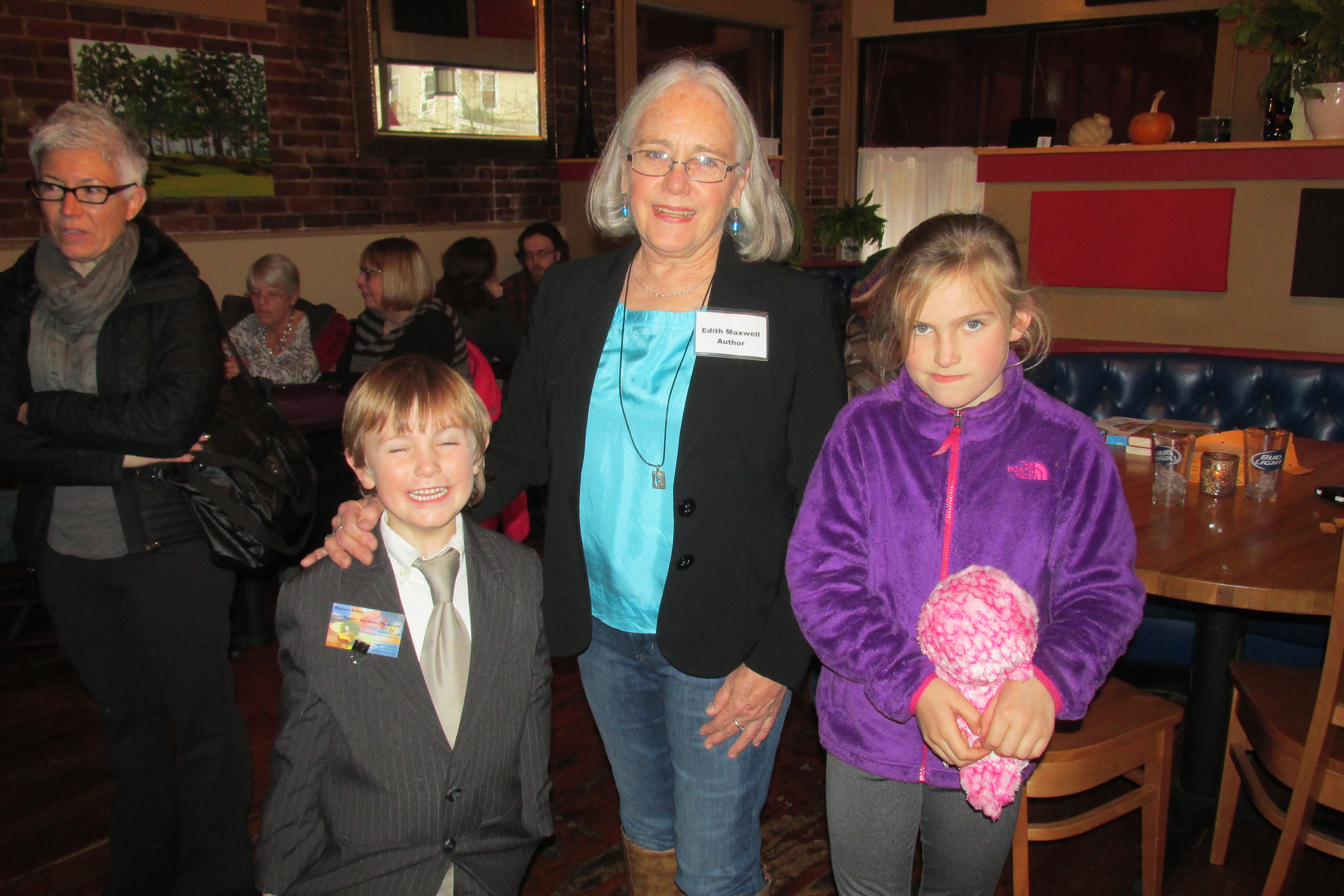 My wonderful sons were in town and both came along, and I was able to introduce a number of writers and readers to each other. Diane Weaver, a mystery fan who won the right have her own name on a character in ‘Til Dirt Do Us Part in an auction a couple of years ago showed up, too.
