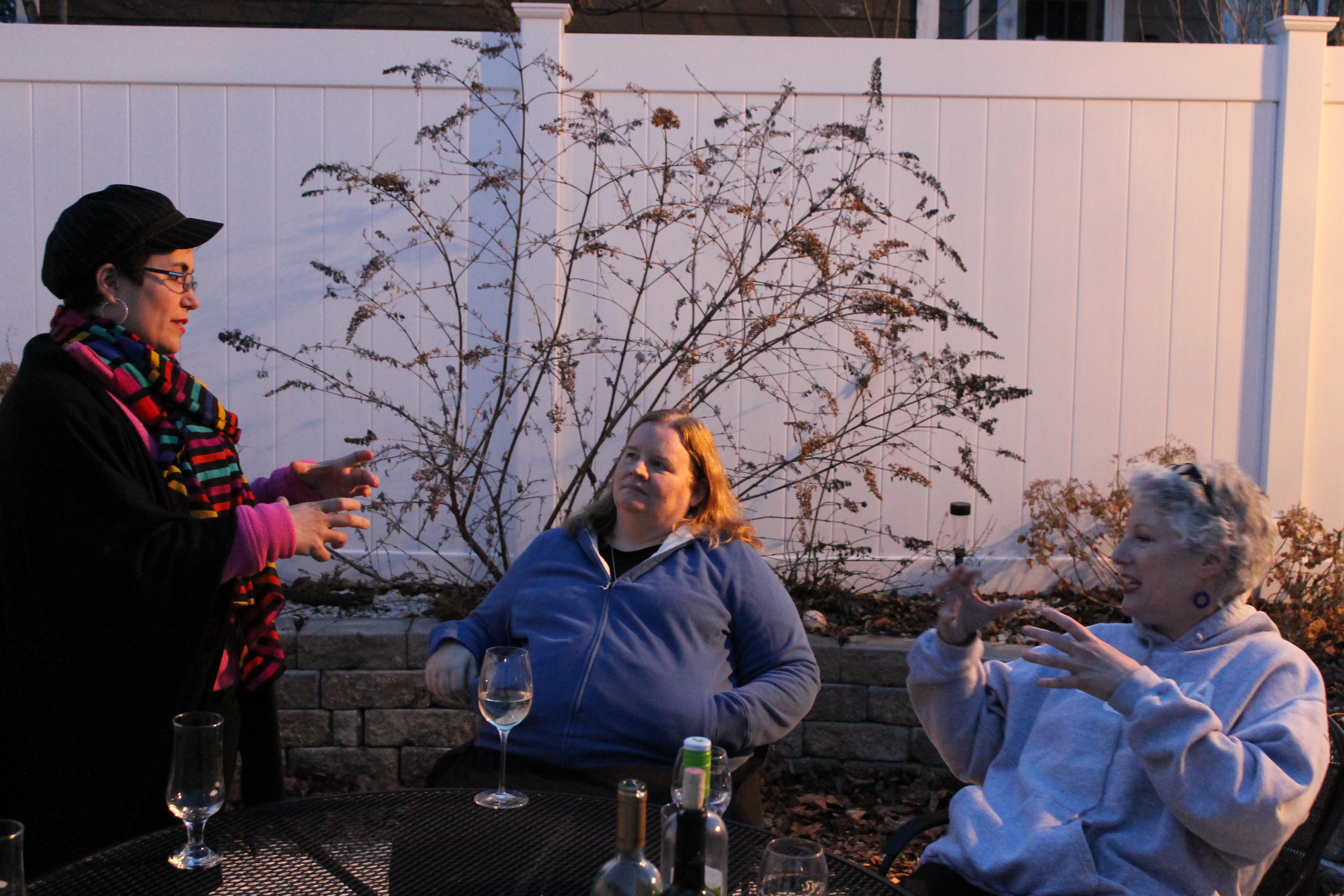 Jessie once again hosted the Wicked Cozy Retreat in Old Orchard Beach. It looks like Jessie and Julie are comparing ways to strangle people. Barb seems calm and thoughtful.