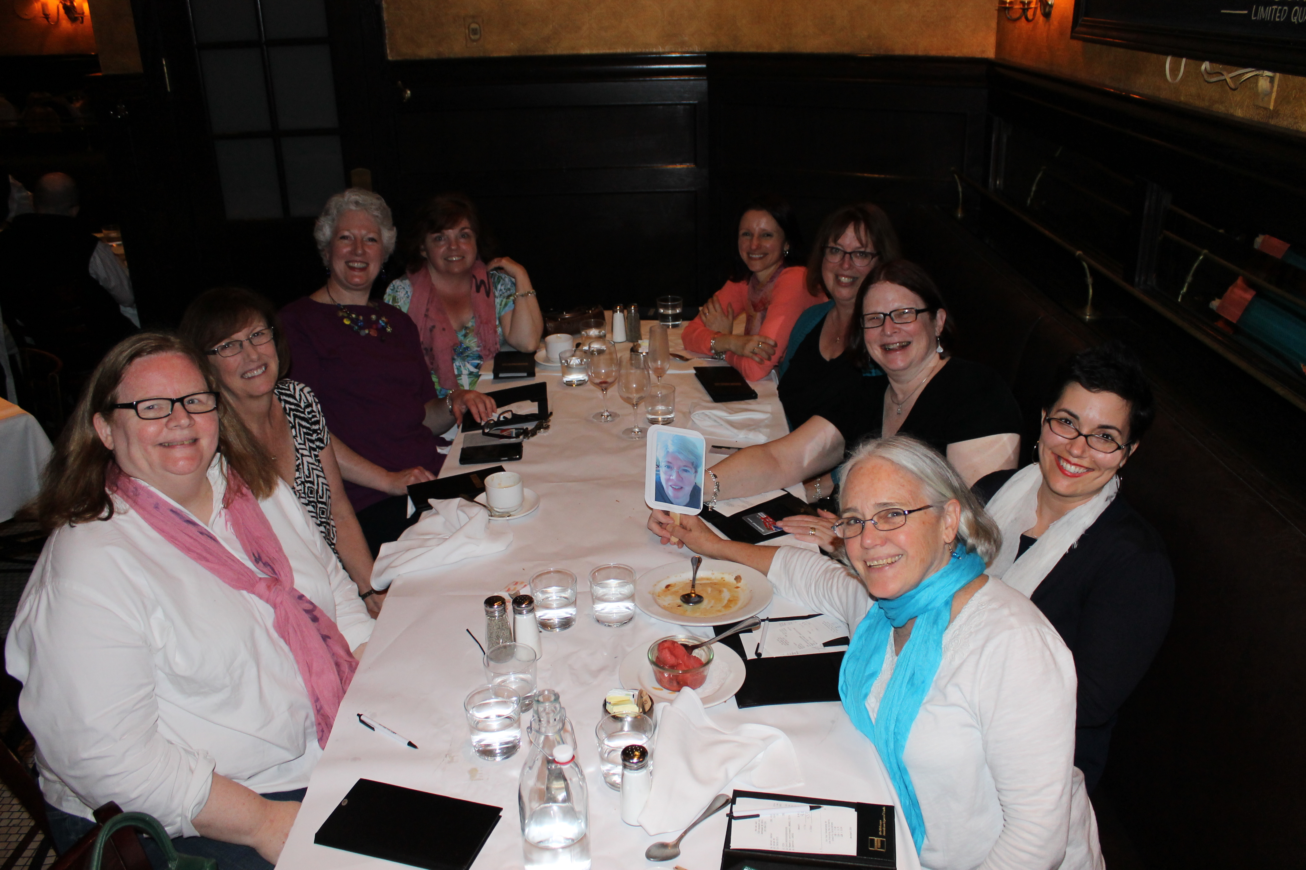 The next time we were together was at Malice Domestic in Bethesda, Maryland. Reine Harrington Carter won the Stick with the Wickeds contest and came with us on a fan. Pat Remick, a former president of the New England chapter of Sisters in Crime joined us for dinner.