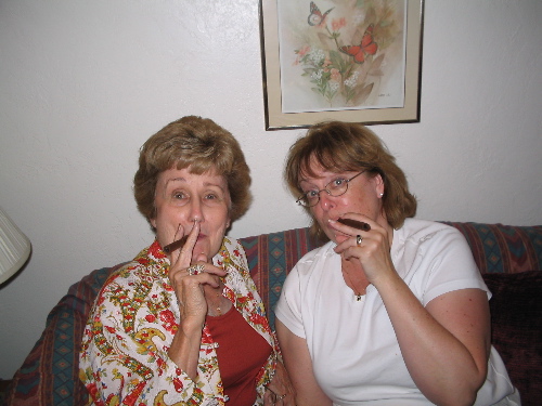 Sherry: My Aunt Pat isn’t a blood relative but my mom’s sorority sister. She was beautiful, interesting, funny, and oh, so full of life. She married her college sweetheart — Uncle John — on radio show and won a honeymoon in Carmel, California! They lived in Arizona, very far from me in Iowa so each visit was extra special. Everyone should have an Aunt Pat in their lives. Aunt Pat always told the story of one of their visits when I was in high school. I was supposed to clear the table and do the dishes but told my mom that I needed to talk to Aunt Pat. The picture of us is the last time I saw her — she died unexpectedly six months later. But it’s a perfect example of how fun it was to be around her — the cigars are cookies.