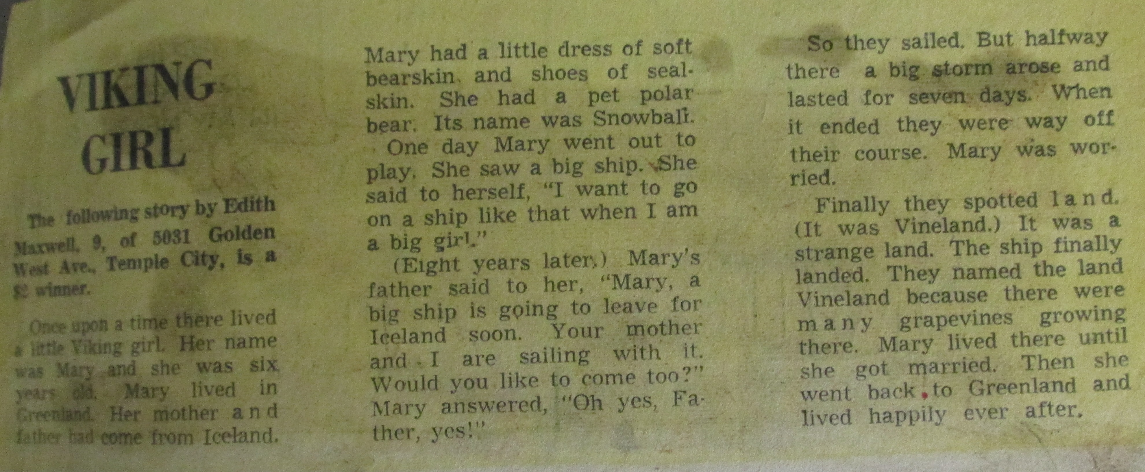 vikinggirl Posted on November 6, 2016November 6, 2016 Wicked Wednesday — Grateful For Our Mentors 3961 × 1633 Edith’s story won a Pasadena Star News contest when she was nine.