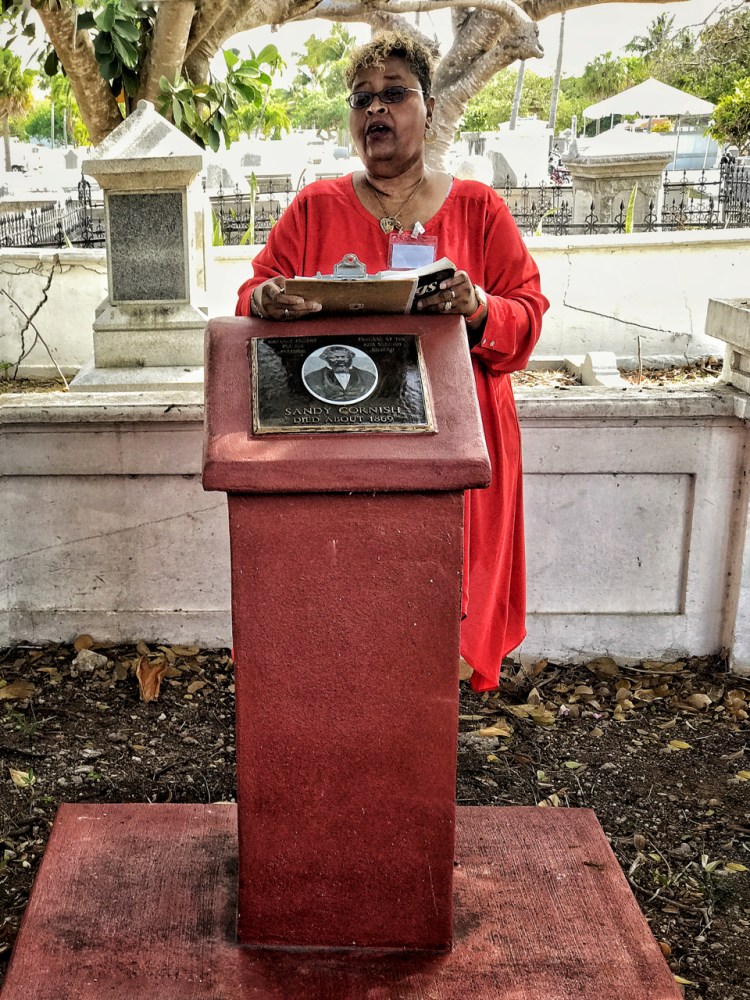 The exact location of Sandy Cornish’s grave in the Key West Cemetery has been lost to history, so a memorial was recently erected. The story of Cornish’s life was told by well-known local singer Wilhelmina Lopez-Martin, who sang the intro and the outro.