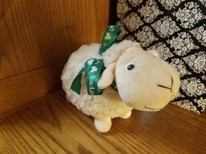 So, a couple of years ago, I was spending a fun afternoon lunching and shopping with another friend, Kensington author Gail Chianese. We stopped in at an Irish imports store, and I saw an adorable stuffed sheep. I said, “Hey! There it is! My new writing mascot.” I proceeded to buy it. And it has sat on my desk ever since, but even though it’s cute, I never really bonded with it. The unappreciated little girl? guy? doesn’t even have a name.