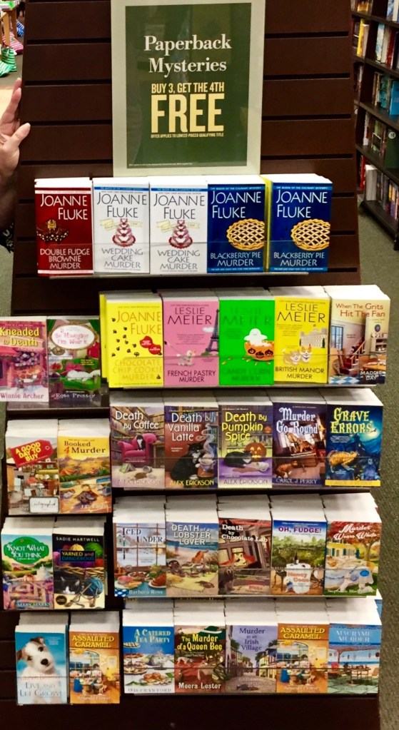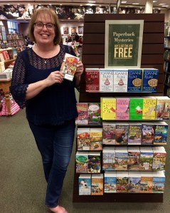 There’s a special end-of-the-aisle display featuring Kensington cozies at every B&N. Sherry Harris, Maddie Day (aka Edith Maxwell), and Barbara Ross all have their latest mysteries on the shelf!