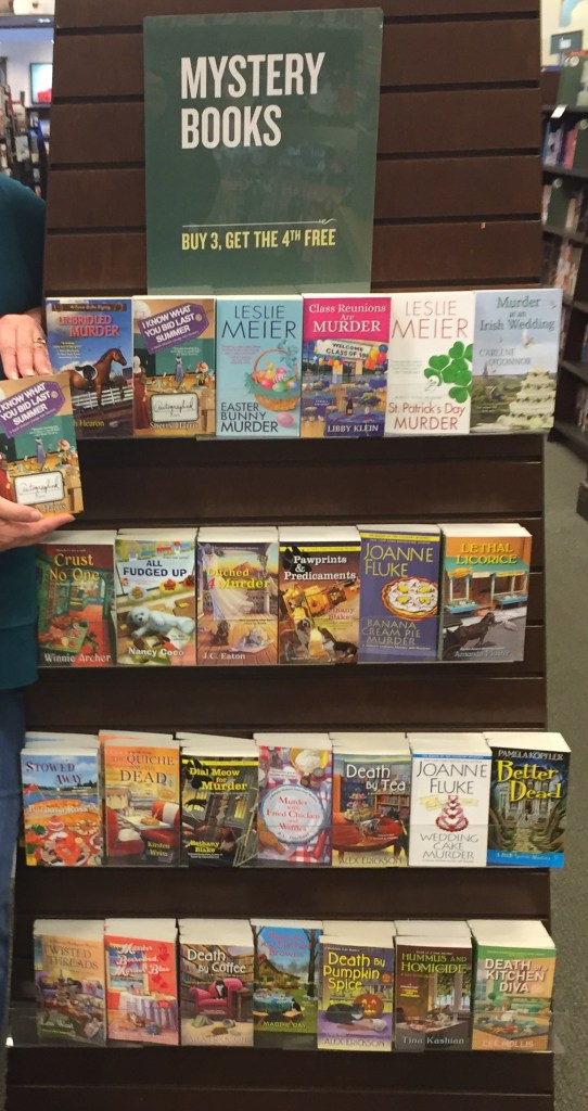 Note: The same sale is going on at B&N online, though purchases there do not make you eligible for the contest. Here’s the link for the sale. https://www2.barnesandnoble.com/b/select-mystery-novels-buy-3-get-the-4th-free/_/N-2q0o