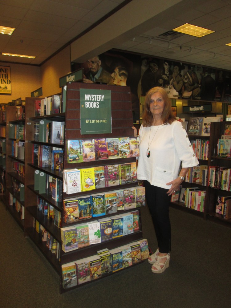 Sherry: Here I am at my local Barnes and Noble in Fairfax, Virginia! It’s always a thrill to see my books in a bookstore. My husband took the pictures and we only got a few strange looks from the many customers in the store.