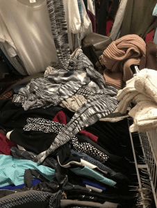 I’m so thrilled to be able to share my new release with you and before I go I want to share a fashion disaster that occurred while I was working on the copy edits of MURDER WEARS A LITTLE BLACK DRESS. I know Kelly could relate and would sympathize because having your closet collapse isn’t fun. Luckily, no clothing was hurt. Don’t try this at home!