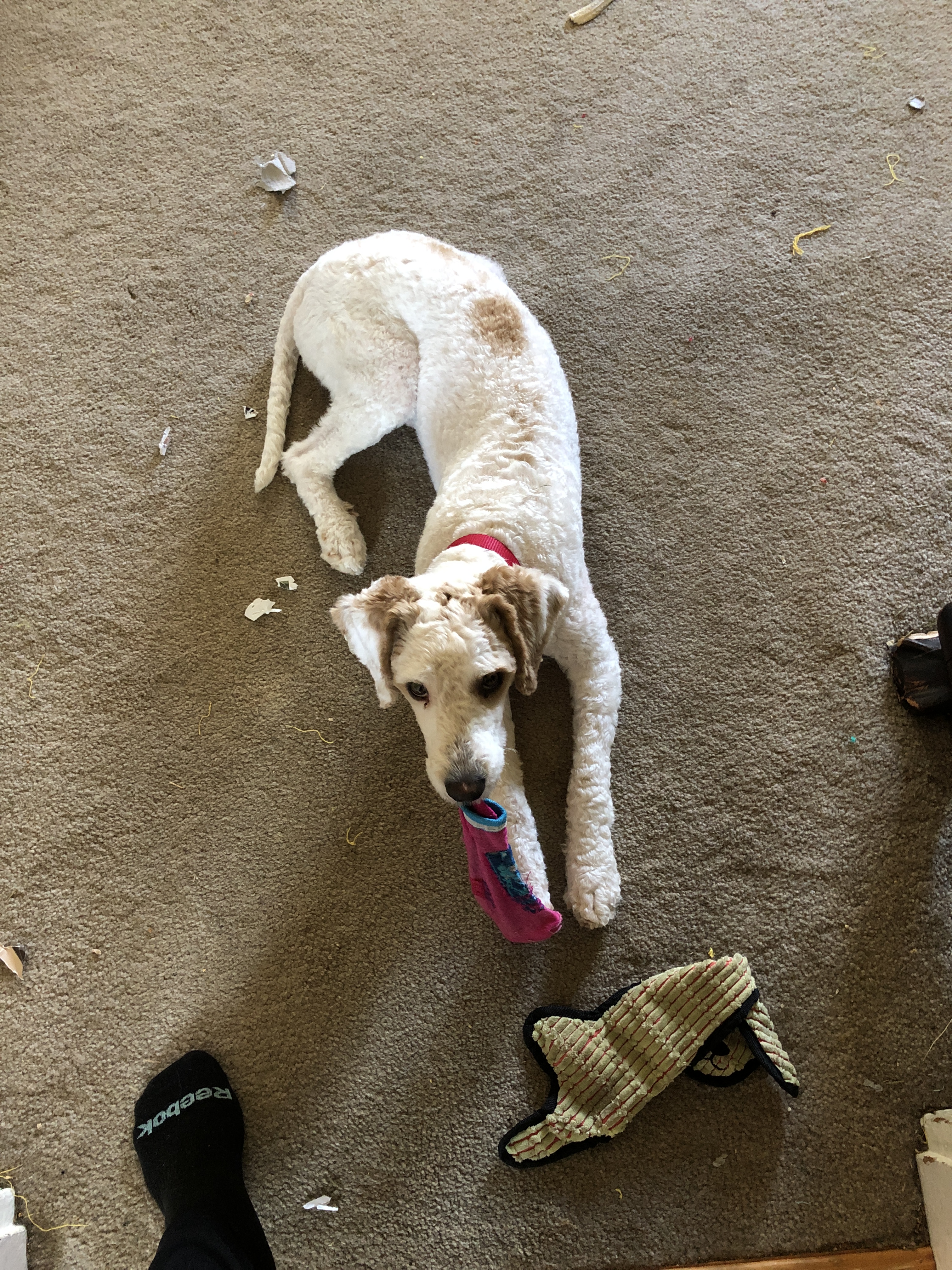 I thought I had at least managed to make a decision when it came to a new knitting project. I had started a zippy green pair of socks for a dear friend but Sampson, the poodle puppy, got ahold of the first one while it was under construction and not only yanked off most of the stitches but also snapped two of the four required knitting needles. I don’t seem to have any others that same size and cannot for the life of me decide to order a new set.
