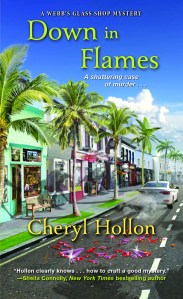 About the author: Cheryl Hollon is the author of the Webb’s Glass Shop Mysteries. She writes full-time after an engineering career designing and installing military flight simulators in England, Wales, Australia, Singapore, Taiwan, and India. Living the dream, she combines a love of writing with a passion for creating glass art with her husband in St. Petersburg, Florida. Cheryl is Past President of the Florida Gulf Coast Sisters in Crime, a member of Mystery Writers of America, and International Thriller Writers.