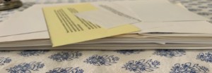 This is a stack of some of the many rejection letters I received back in the day when we still used snail mail for queries. And yes, that tiny piece of paper is a rejection letter as is the index card. They came in all shapes and sizes. I can’t find my favorite one which was a torn in half, mimeographed piece of paper with a footprint on it.