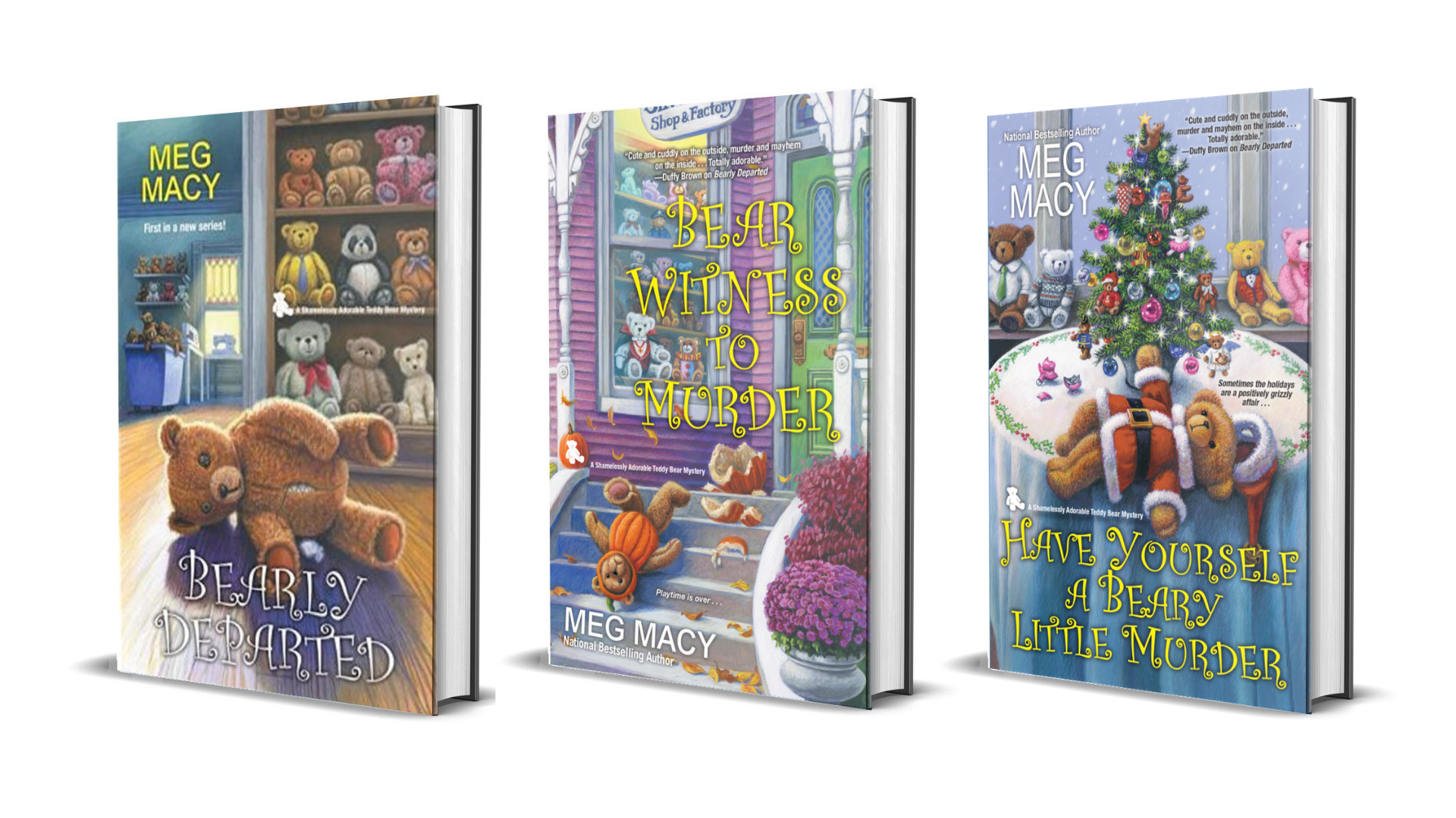 BIO: Award winning author Meg Macy writes the “Shamelessly Adorable” Teddy Bear cozy mystery series for Kensington, and is also one-half of the writing team for the Agatha Award-nominated historical mysteries featuring Eliza Doolittle and Professor Henry Higgins. As Meg Mims, she’s written award-winning western historical mysteries and sweet Christmas-themed romance novellas with rescue dogs and cats. Meg tackles her to-be-read pile between deadlines, and enjoys tearooms, flowers, and gardening. Visit her on Facebook, Instagram, Twitter, or her website at www.megmacy.com