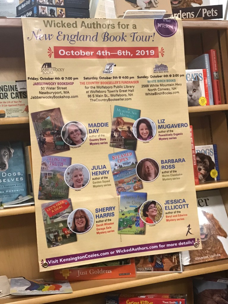 Regular readers know the Wickeds were on a mini-tour last weekend, sponsored by three fabulous independent bookstores. A million thank yous to Jabberwocky Books in Newburyport, MA, The Country Bookseller in Wolfeboro, NH, Wolfeboro Public Library, White Birch Books in North Conway, NH, and Larissa Ackerman, our publicist at Kensington Books.