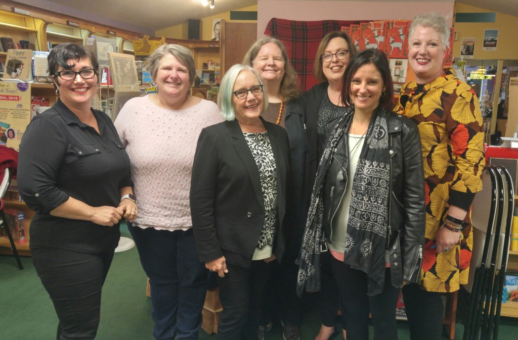 Julie: As Sherry mentioned, my grandparents had a cottage on Lake Winnipesaukee, and my happiest childhood memories are there. Using the as my base of operations and showing Sherry around was wonderful. As was the dinner at Harts Turkey Farm with Barb and Sherry after our last stop. But my favorite part of the weekend was that we did a mini-book tour. Together! Honestly, how flipping cool is that? The bookstore owners were all so generous and supportive. The friends of the library in Wolfeboro were lovely, and fierce. Friends of the blog came out to say hello. I can’t believe how quickly the entire weekend went. So grateful to Larissa for putting this all together.