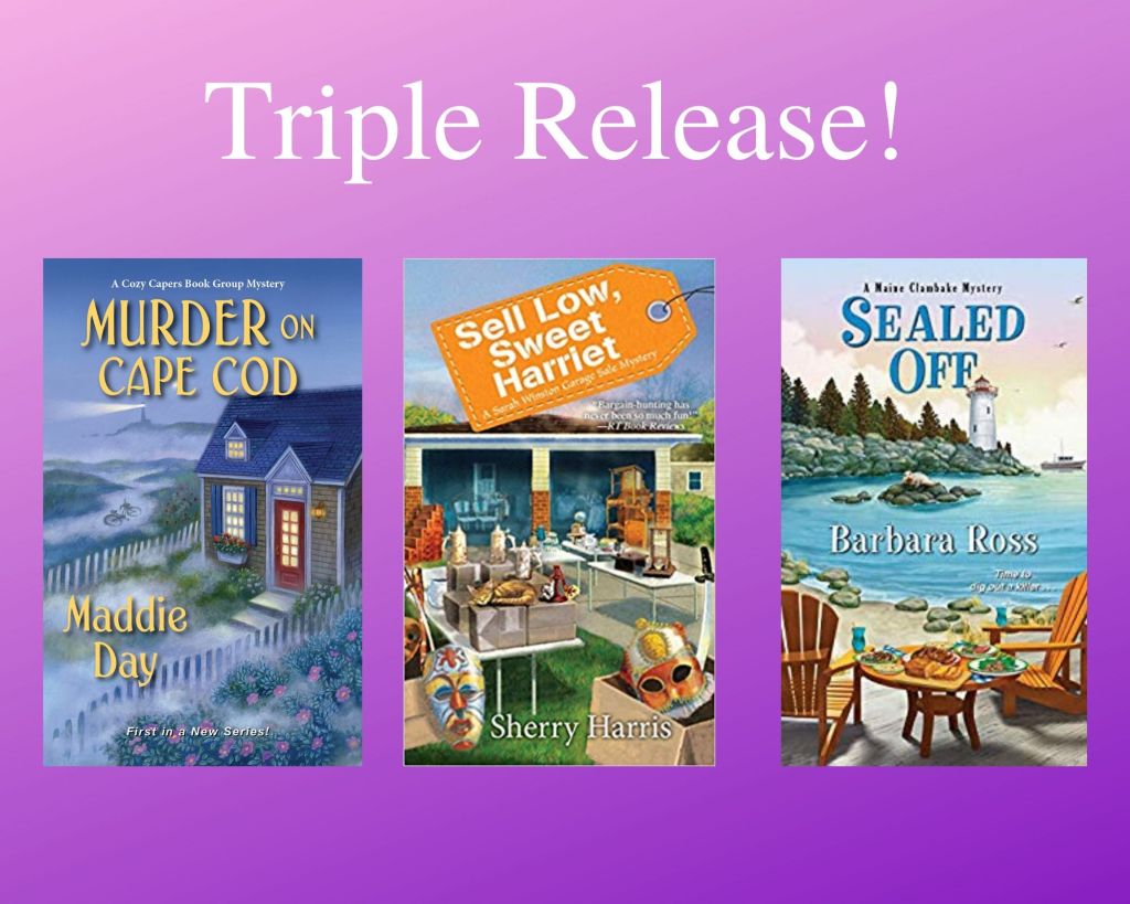Congratulations on the releases! Can’t wait for the opportunity to read “Sell Low, Sweet Harriet” by Sherry Harris and “Sealed Off” by Barb Ross. I’ve already had the great privilege of reading Maddie Day’s “Murder on Cape Cod” and LOVED IT. I would definitely recommend it to anyone who hasn’t read it yet.