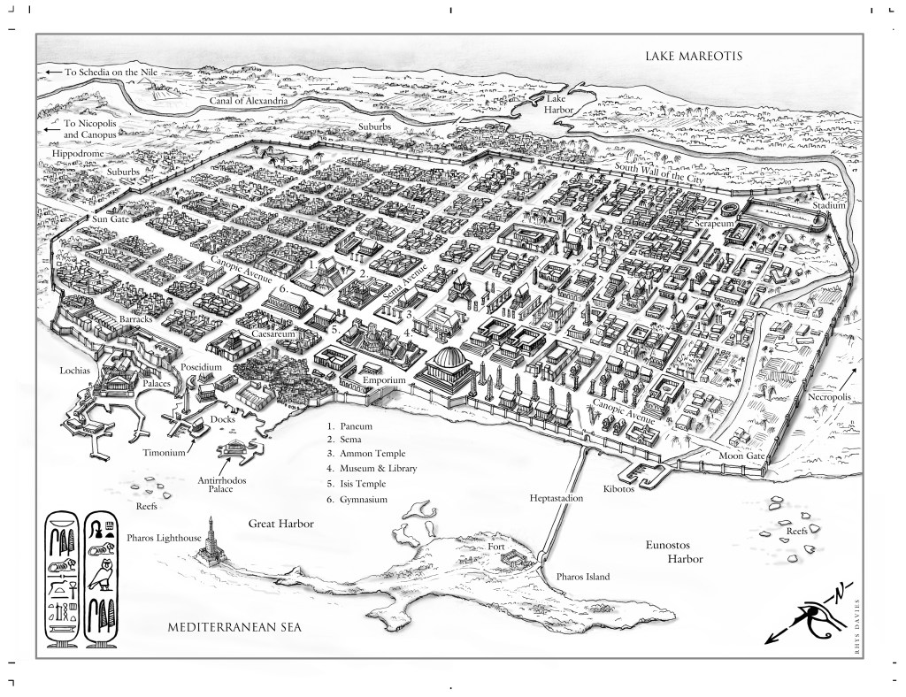 The Alexandria map, on the other hand, was much more fun. It was for the historical trilogy ‘ The Shards of Heaven’ by Michael Livingston. There were some historical references to go on, but as far as I could find, there wasn’t a similar 3D image of how the old city looked in Roman times, so it felt like I was breaking new ground to some extent. These ‘ flyover maps’ are fun to do but do take a lot of time to do…quite fiddly.