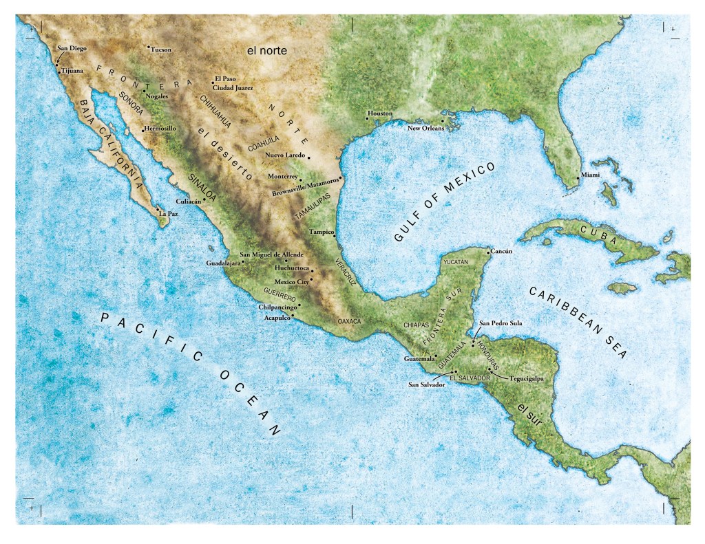 Real world maps are technically a little more challenging as all the details need to be right on. I recently worked on the map for American Dirt by Jeanine Cummings which caused quite a stir. It became part of the whole Oprah book club thing, but I must admit it was fun seeing a video of Oprah looking at a map I made.. ha!