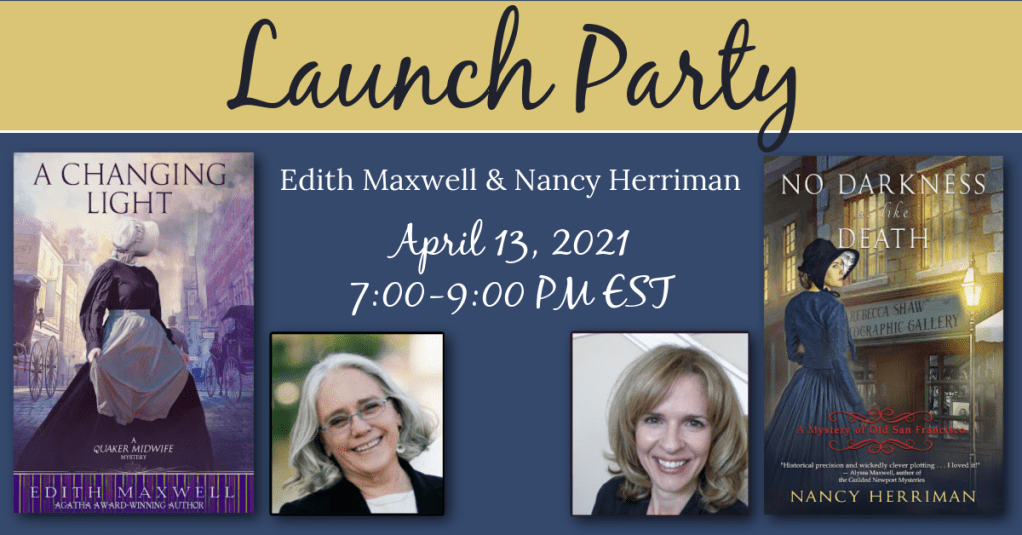 Please join Nancy Herriman and me tonight on Facebook for our joint historical launch party. No Darkness Like Death, her next Old San Francisco mystery, also releases today, and it’s one of my favorite series.