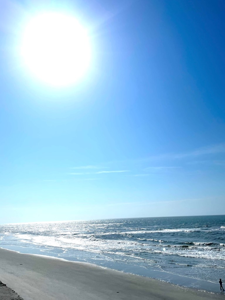 I love the sound of the waves too. I usually go to sleep to the sound of waves crashing or to sleep stories set at the beach. I don’t love excessive sun exposure either. It feels good for a while and then I’m just uncomfortable. A large umbrella is a must.