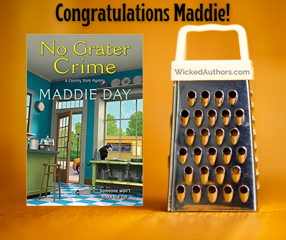 Edith/Maddie: Thank you all, dear Wickeds, for the kind wishes. Sherry, you crack me up. Of course Bob doesn’t want bits of knuckle skin in his grated cheese! I am also prone to that. Like Barb, if I’m making carrot cake or coleslaw, I always use the grater plate in my food processor. Bingo, done in a flash, and no scraped fingers. We have a dedicated rotary grater for the parmesan we like fresh grated on pasta. Fellow writer and friend Tiger Wiseman sent me a fabulous microplane grater/zester (with a turquoise handle!). But it’s super sharp, so I am very, very careful when I use it.