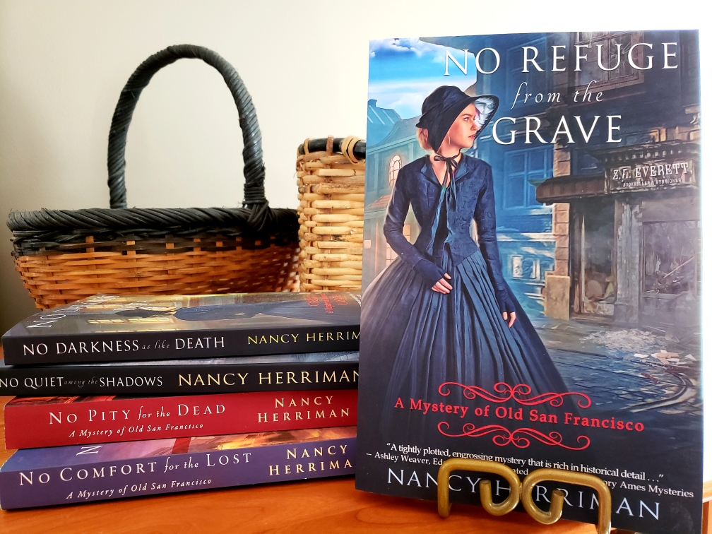 Nancy Herriman is one of those writers who are just fabulous at setting a scene and transporting readers to another place and time. I have had the pleasure of getting to know her better over the last few years on the Sleuths in Time group on Facebook as well as at some in-person events. It is my great pleasure to welcome her here today to talk about her work and to give you all the chance to peek at the gorgeous cover of her latest release! She is offering a signed copy of any one of her San Francisco books, including her most recent release, NO REFUGE FROM THE GRAVE to one lucky commenter. Take it away, Nancy!