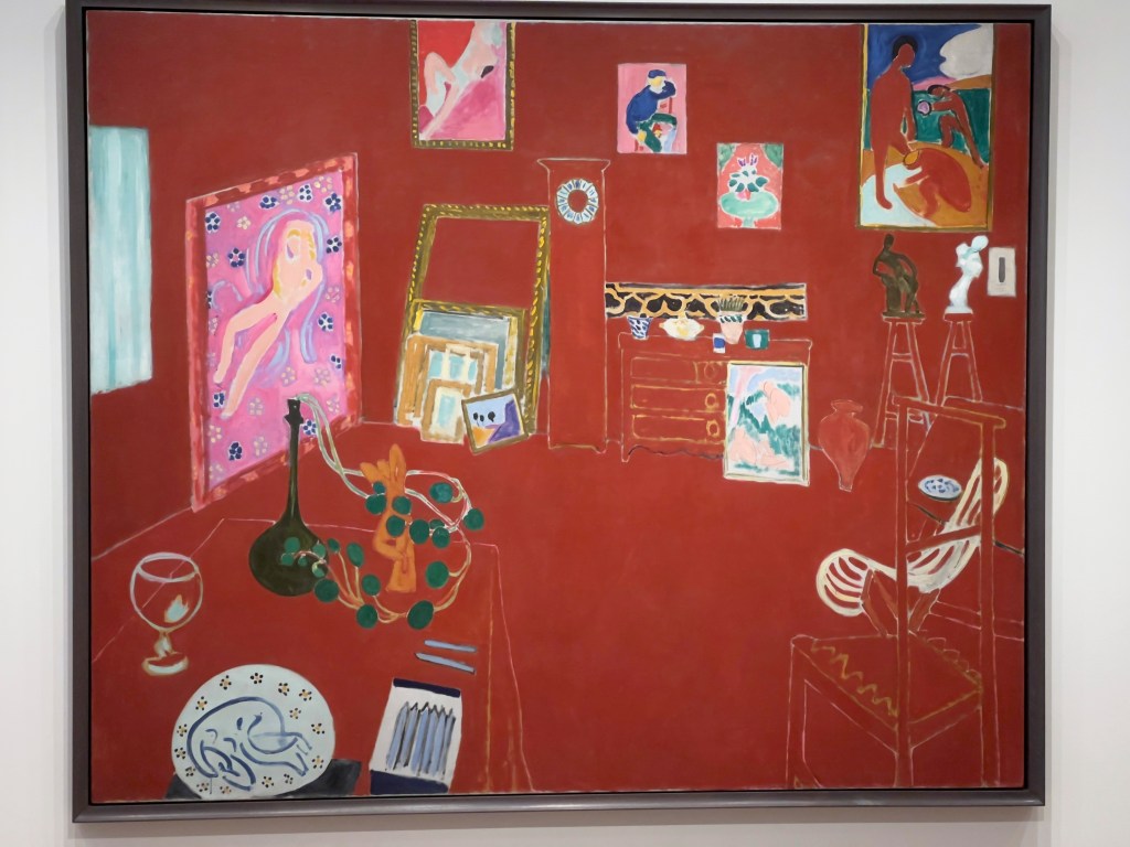 Friends had told us about the exhibit of Matisse’s The Red Studio. MoMA has assembled all of the artwork and sculpture in the painting in one place. (Except for the nude on the left which Matisse considered unfinished and asked his daughter to destroy on his death.) It was a really neat and instructive way to see the painting.