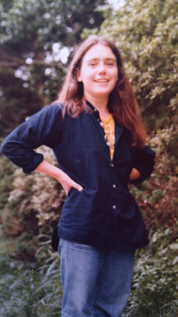 1975 – a dress I wore for my first office job. High neck, sleeves to my wrists, but a skirt so short I still remember having to squat down and pick up things to one side or the other because there was no way I could dare to bend forward! I keep it because of the memories.
