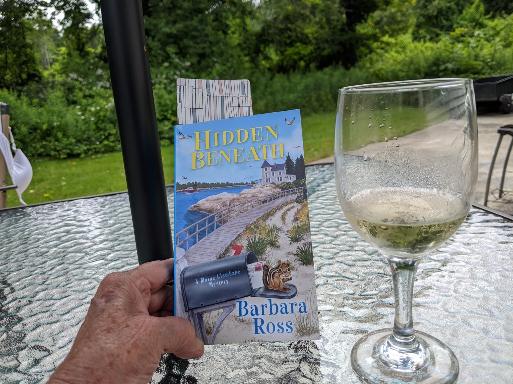 Lighthouses, lobster rolls, a boat ride to see puffins, the Wyeth museum, blueberry pie, and more, including reading Barb’s Hidden Beneath on our little patio.