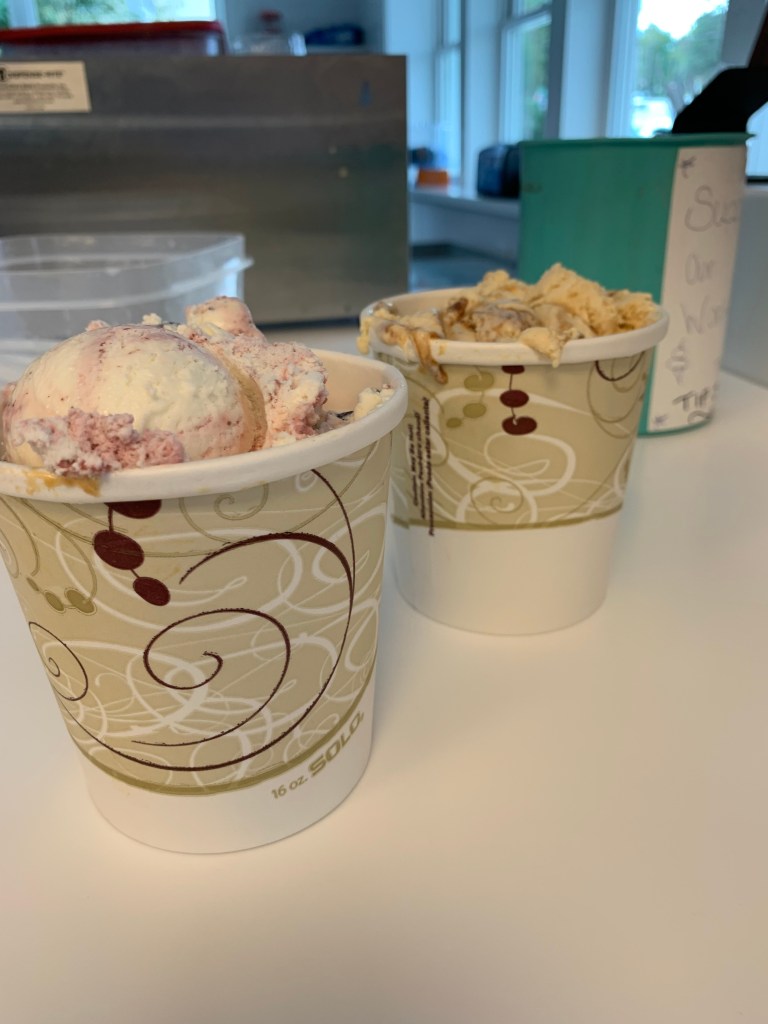 Another brief break to talk about ice cream. When we lived in Bedford, Massachusetts we discovered Bedford Farms ice cream. And we still think it’s the best ice cream we’ve ever had. But my husband seemed determined to find out if there was anything close. I had no idea he liked ice cream that much. If we went by a stand that was closed for the season he was disappointed. We went to two different places in Wolfboro. Both were good. The portions are huge! The picture below is of a kiddie size cup and it’s 16 ounces!