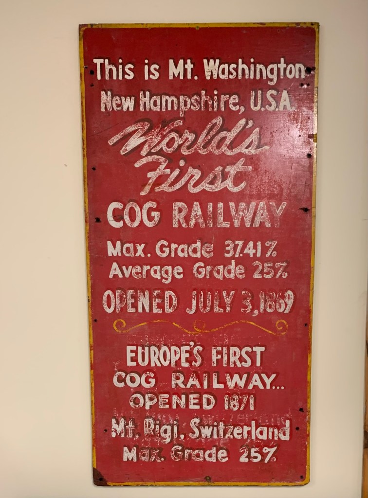 Julie recommended taking the cog railroad up Mt. Washington. It’s the oldest cog railroad in the world. Mt. Washington it renown for having the worst weather in the world! The narrator of our trip up the mountain said two days earlier the winds were 80 to 90 miles per hour and that they told people to keep a tight grip on their children.