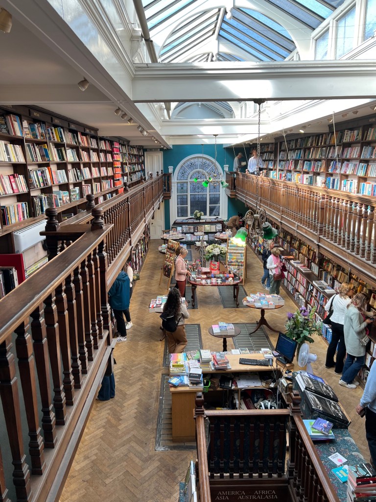 What a great idea to do a tour of bookshops in a city! Thanks for posting these photos, so us readers can get a taste of the stores. Daunt Books has beautiful skylights, and I enjoyed the sign “Please Your Mind” at Word on the Water.