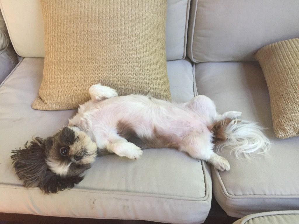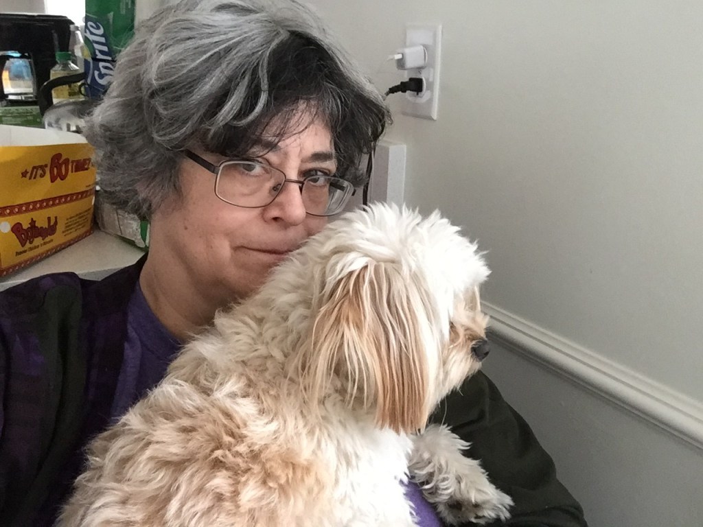 My brother has two dogs: Ginger, 12, a Shih-tzu, and Maple, 7, a Pomeranian/Bichon mix. (I call her a Pom bitch.) I only live a couple of miles away, so if my brother, a clinical psychologist with a lively therapy practice, is having a busy day, I’m the backup dog-minder. It’s not a big chore for me to dash over to take the girls (as we call them) out for their midday or late-afternoon airing. In fact, I enjoy doing it. Makes a nice break in what is often a very quiet day, especially if I’m immersed in writing a draft. I often stick around after I’ve rewarded the girls with their treats and we keep each other company. I read a book or listen to a podcast with one or both of them on my lap or leaning against me.