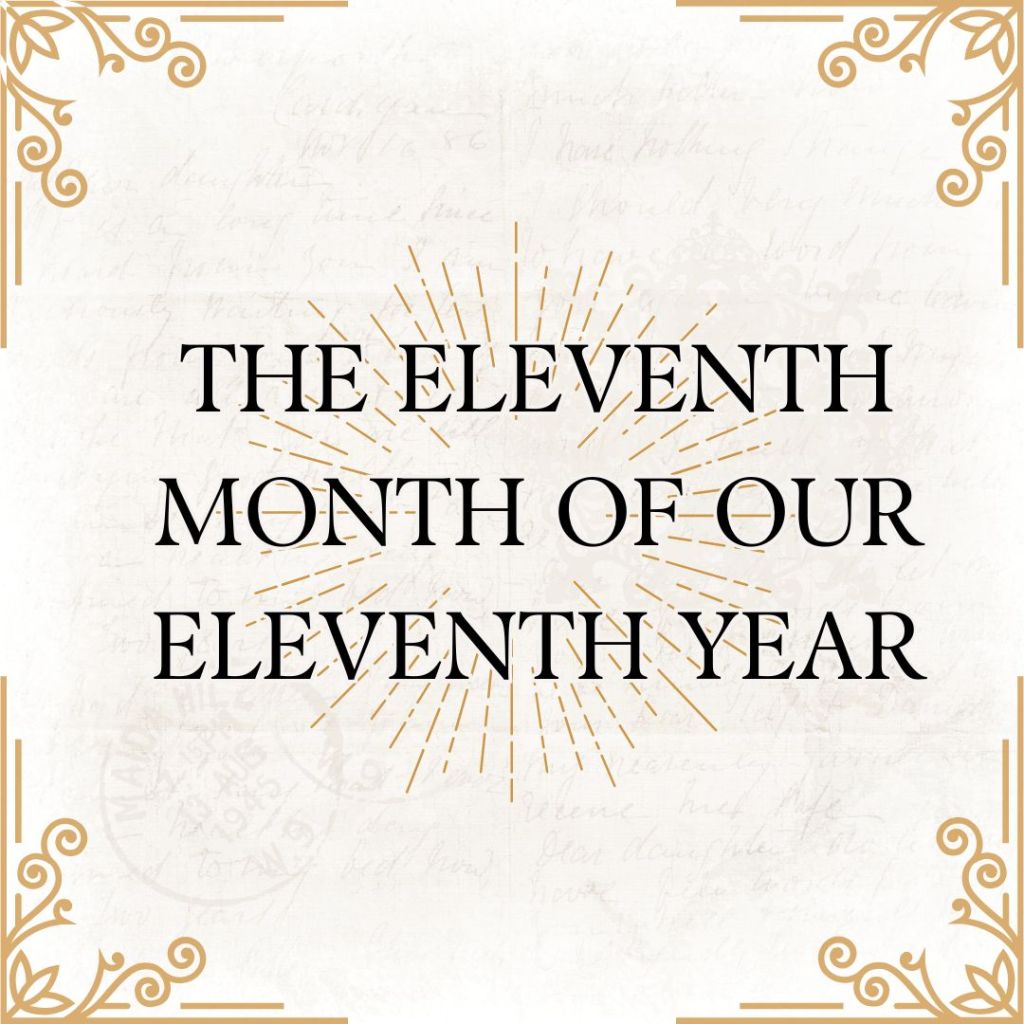 Again, this is the eleventh month of the eleventh year of our blog. That led me to reflecting a little and  looking up things about the number eleven. According to https://www.thefactsite.com/number-11-facts/ Canada really likes the number 11, it seems. Their one-dollar coin, called the Loonie, has eleven sides. There are also eleven points on the maple leaf that adorns the national flag of Canada. And, finally, a number of Canadian banknotes have some form of clocks on them. The time, of course, is 11:00!